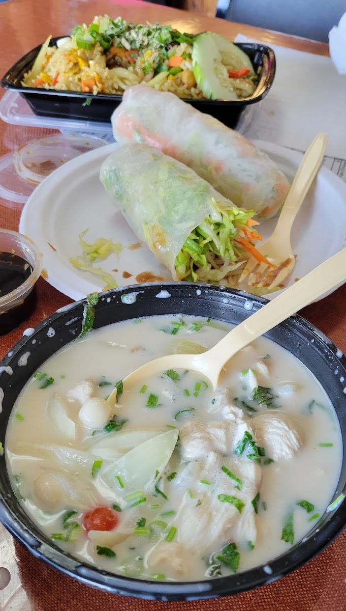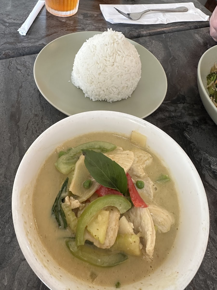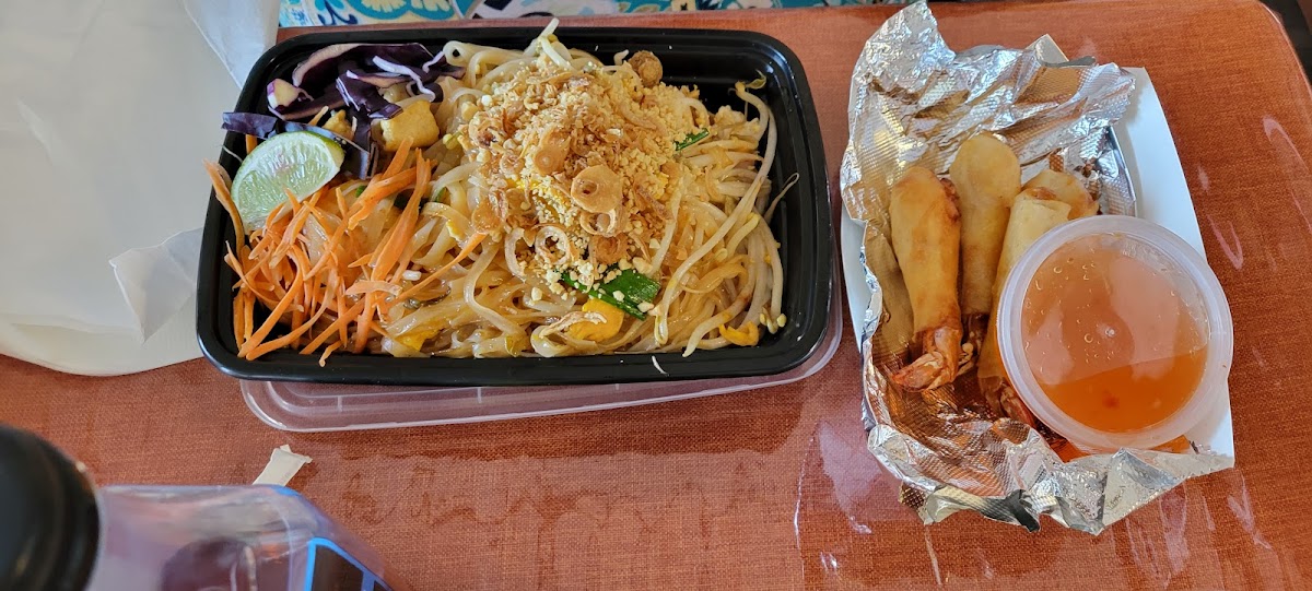 First time visitor new to the area. Love Thai cuisine so was eager to give this a try. I ordered the green curry. It was great. My only regret was that I wasn’t able to take my left overs due to my plans for the day. I hated to leave the rest. I usually get medium heat. After discussion with the host, changed to mild and It had some heat for mild. Next time I’ll do mild plus. Hubs tried the Yakisoba. He thought it was good. We both loved the Thai iced tea unsweetened. The hint of spice was perfect. Portion sizes were generous. Service was friendly and fast. Establishment was clean and inviting. Will eat here again.